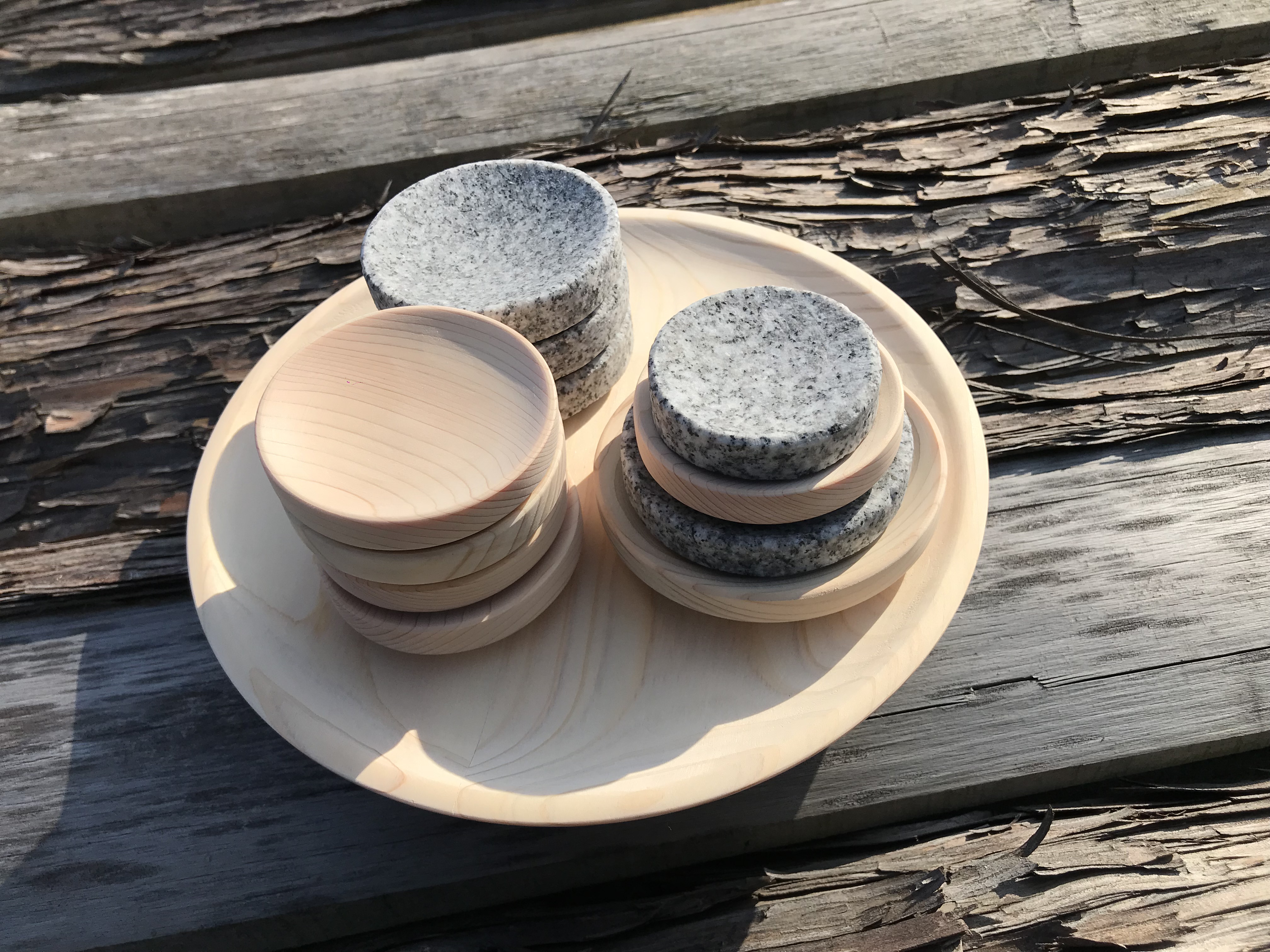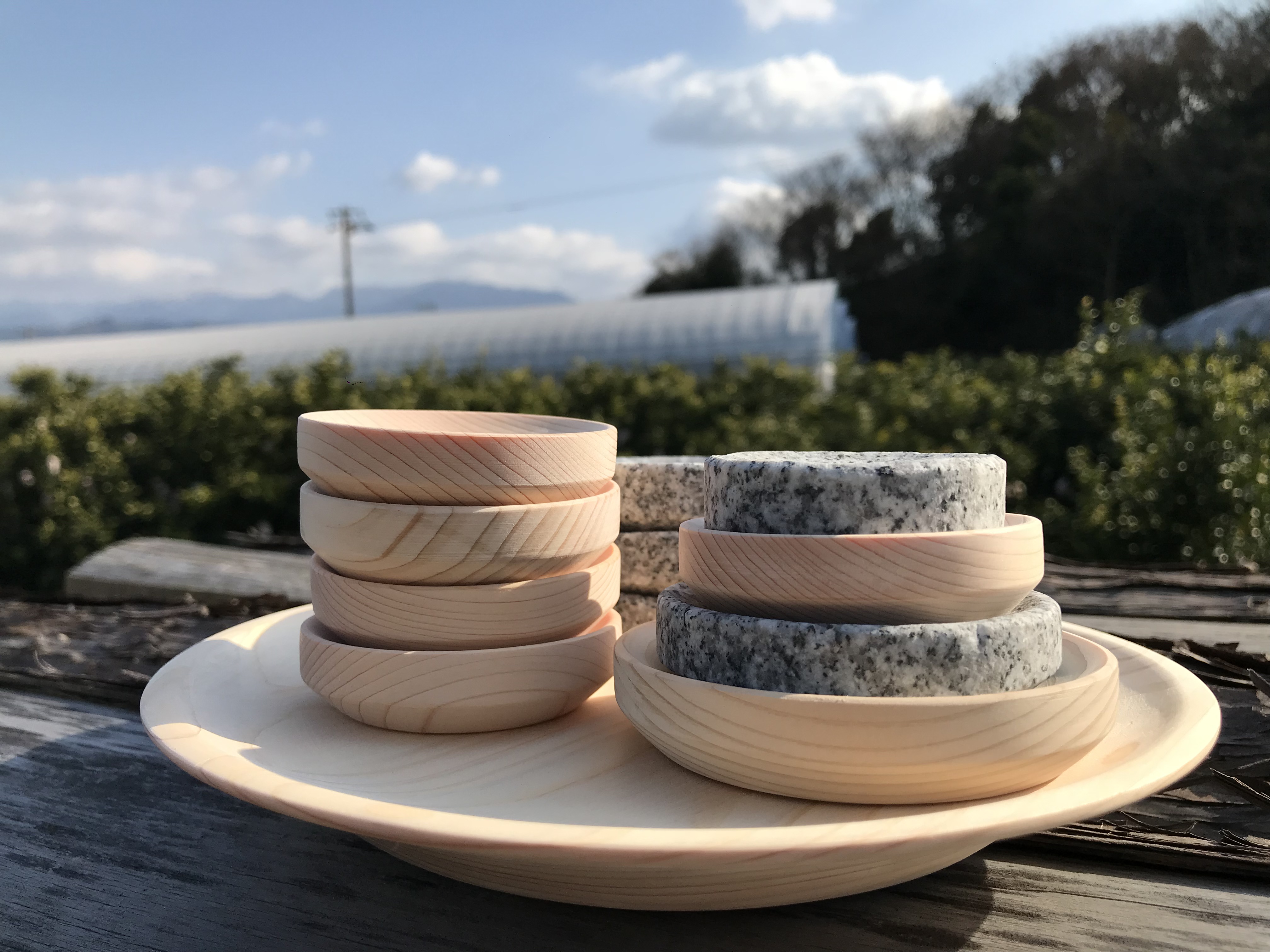 大島石豆皿、媛ひのき豆皿、大島石小皿、媛ひのき小皿