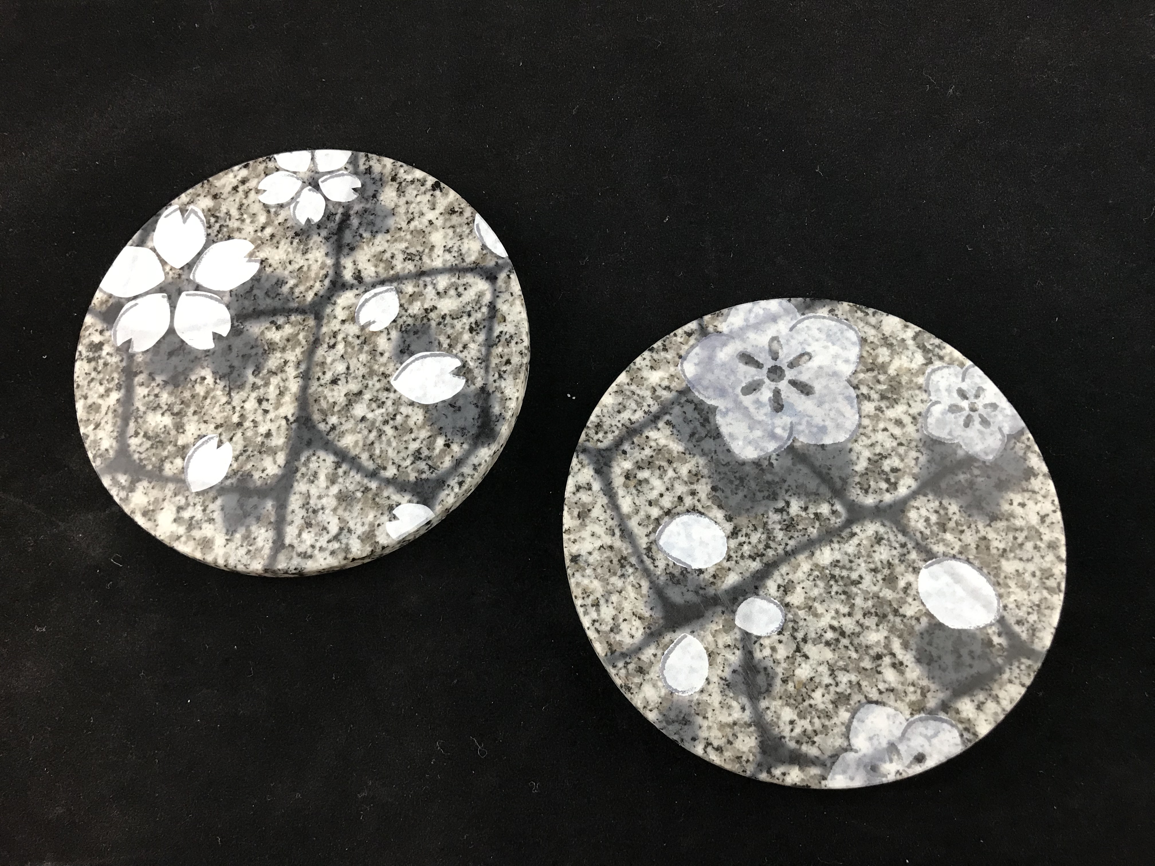 大島石コースター 投稿者: editor2018年3月16日2018年4月5日うきはな うきはな は愛媛県・砥部の泉や小川に舞う「陽光桜」や「七折梅」をモチーフにしたシリーズです。 グラス越しに、水面に浮かぶ花びらをお楽しみください。 愛媛県の瀬戸内海の大島で採石されている堅牢で青みを帯びた美しい石目の大島石に転写印刷を施しデザインしためずらしい石のコースターです。 表面には食品衛生法に適応した安全なウレタン樹脂でコーテイングしていますので、食器用洗剤で洗えるのが特徴です。 大島石コースター(桜) 大島石コースター(梅)/各90×90×10㎜